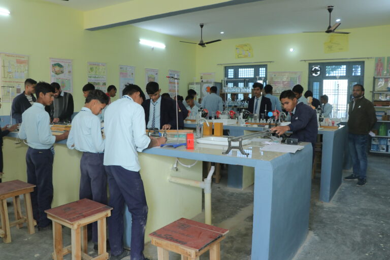 Composite Science laboratory provides a platform for students to nurture the budding scientist within them. The students are provided with separate workstations with burners and plug points. The acids and other reactive chemicals are stored in separate locked cupboards. Composite science lab with all safety and fire precautions.